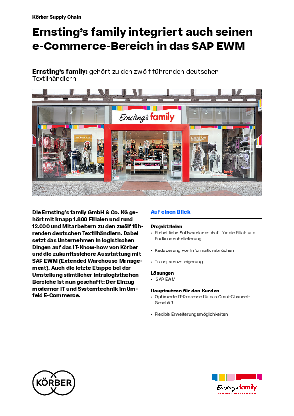 Ernsting’s family integriert auch seinen e-Commerce-Bereich in das SAP EWM