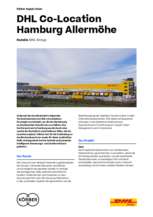 Das Sortierzentrum in Hamburg wurde durch eine zweite Sortierhalle in unmittelbarer Nähe, die Co- Location ergänzt. Körber hat für die Anbindung an das Bestandszentrum sowie für diese zusätzliche Halle umfangreiche Sortiertechnik und passende intelligente Steuerungs- und Codiersoftware geliefert.