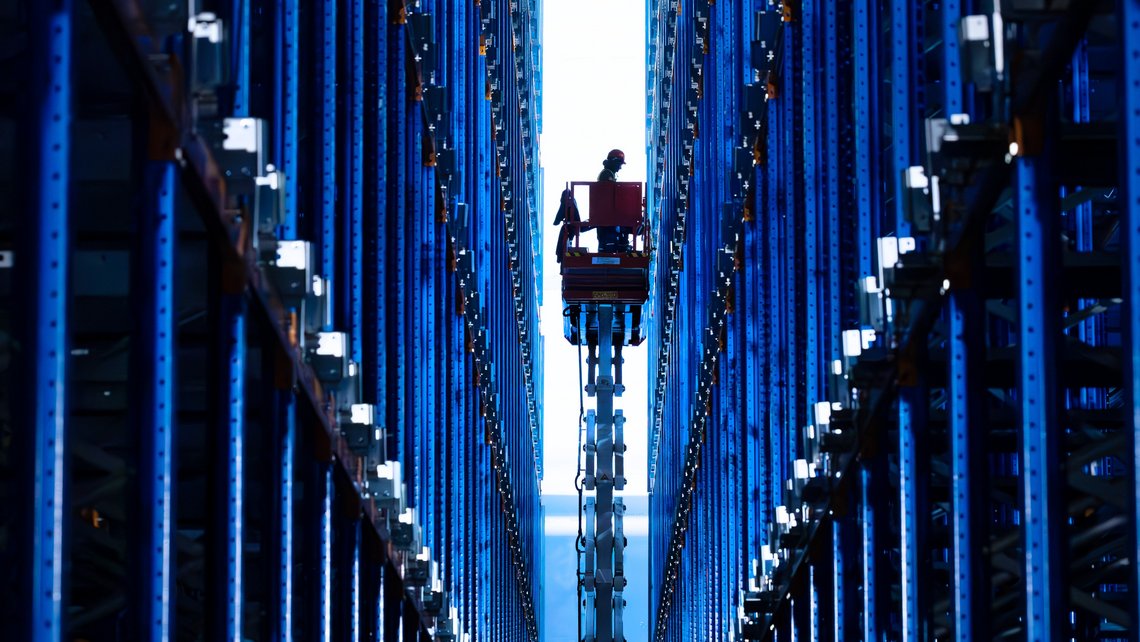 Um den hohen Anforderungen an den Durchsatz am Standort gerecht zu werden und eine hohe Lagerdichte zu erreichen, realisiert Körber eine hocheffiziente Lösung. Diese besteht aus schienengeführten Transportfahrzeugen für die Verteilung der Paletten an mehrere Regalbediengeräte und einem Shuttle-System für die mehrfachtiefe Palettenlagerung. Dieser Ansatz optimiert sowohl die Leistung als auch die Raumnutzung und gewährleistet ein agiles, präzises Handling großer Volumina in der Anlage.