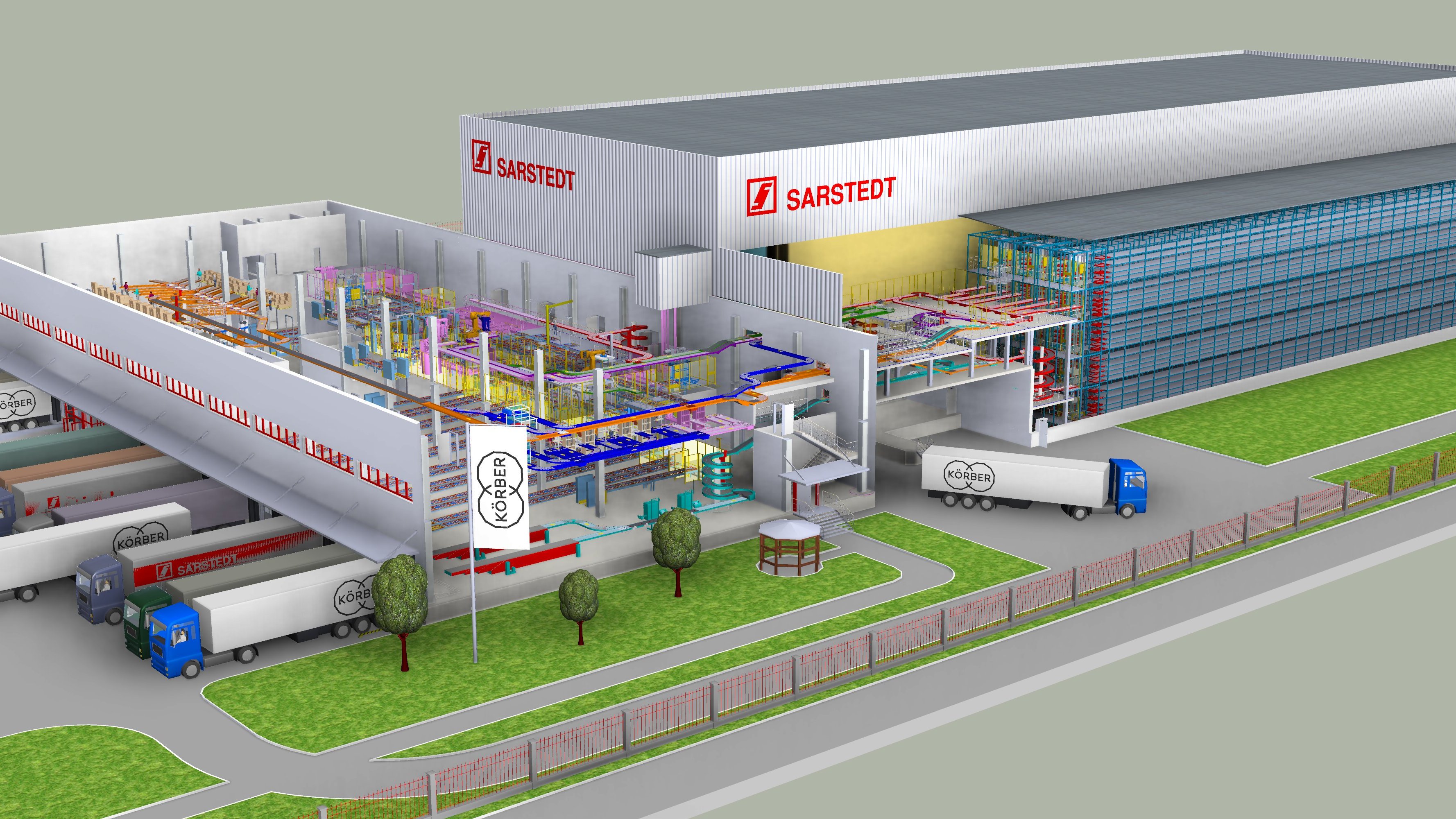 SARSTEDT hat für dieses Projekt Körber als Generalunternehmer für die Intralogistik ausge-wählt. Die Beauftragung der Silo-Regalanlage und der Paletten-Regalbediengeräte erfolgte direkt an andere Unternehmen, werden jedoch von Körber integriert. Für die Software-Ebene vertraut man ebenfalls auf Körber, konkret dessen Geschäftsfeld Supply Chain Consulting. Diese werden den Neubau auf Lagerverwaltungs- und Materialflusssteuerungsebene mit ei-ner SAP basierten Logistiklösung ausstatten (SAP EWM und SAP EWM MFS).