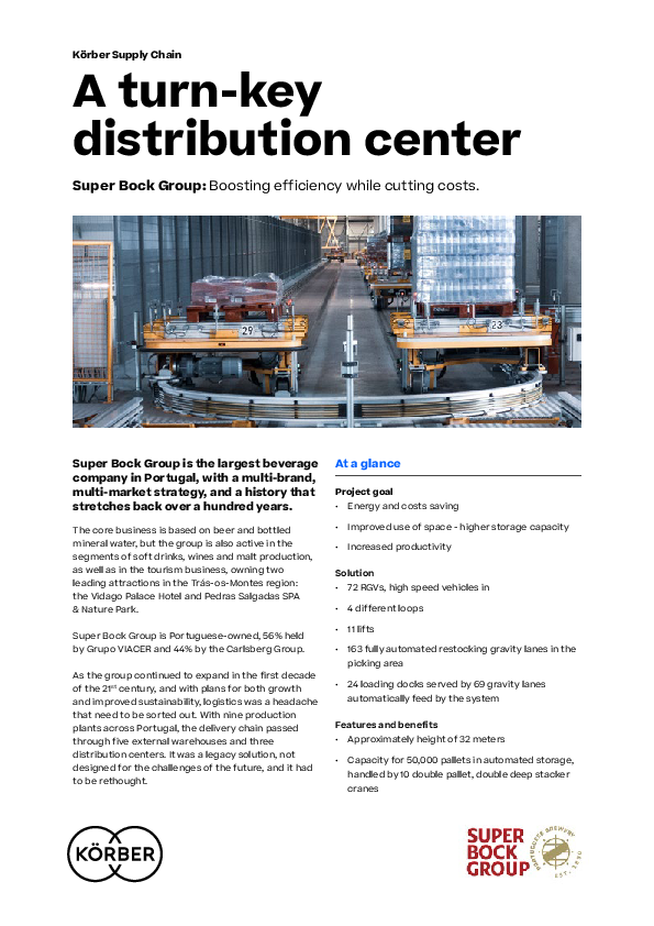 Super Bock Group is the largest beverage company in Portugal, with a multi-brand, multi-market strategy, and a history that stretches back over a hundred years. This is a major investment, but the benefits are crystal clear. Super Bock saw significant reduction in both cost and emissions as well as improvement in process transparency. The group maintained its productivity while reducing operating costs and order preparation errors, keeping full traceability of its products – a critical aspect for a beverage company. Super Bock is more competitive and fully capable of responding to the demands of the market.