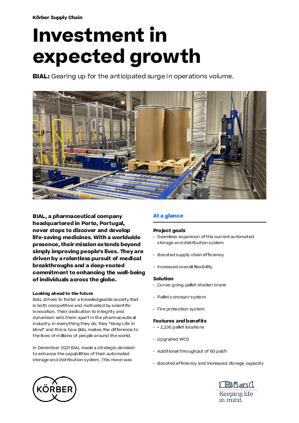 BIAL upgraded the existing software to the latest version of Körber’s K.Motion Warehouse Management System which is web-based, thus providing the pharma company with impressive flexibility. As of today, the company makes the most of the existing space freeing it up other internal processes. Ultimately, this enables BIAL to enhance its product delivery to customers, ensuring faster and more efficient service.