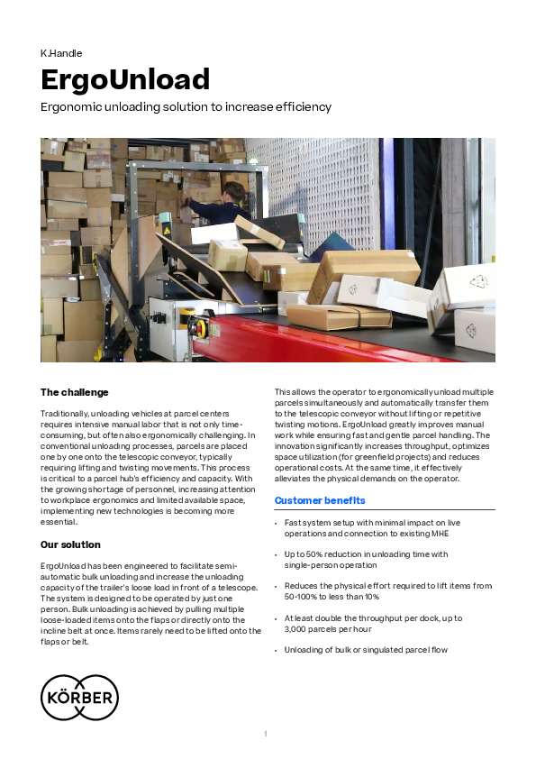 ErgoUnload has been engineered to facilitate semi-automatic bulk unloading and increase the unloading capacity of the trailer's loose load in front of a telescope. The system is designed to be operated by just one person. Bulk unloading is achieved by pulling multiple loose-loaded items onto the flaps or directly onto the incline belt at once. Items rarely need to be lifted onto the flaps or belt.
