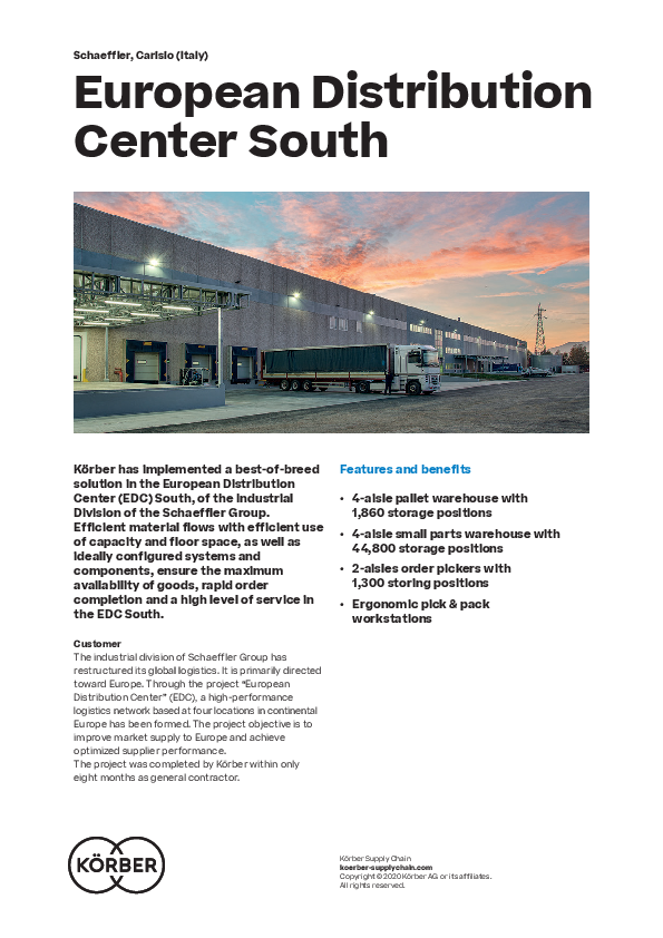 Körber has implemented a best-of-breed solution in the European Distribution Center (EDC) South, of the Industrial Division of the Schaeffler Group