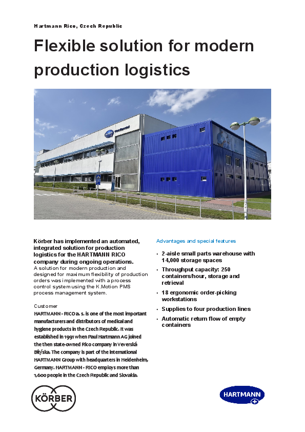 Körber has implemented an automated, integrated solution for production logistics for the HARTMANN RICO company during ongoing operations.
