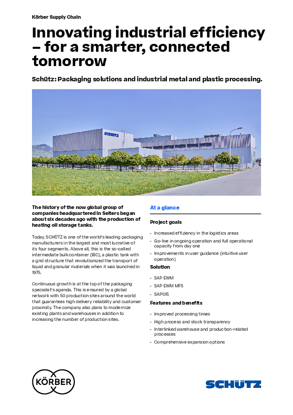 SCHÜTZ has implemented a powerful logistics platform using SAP EWM and MFS to seamlessly connect warehouse and production processes across its sites in Selters and Montlingen. The solution delivers shorter lead times, reduced inventory costs, and an intuitive user experience powered by SAPUI5. This case study shows how SCHÜTZ, with Körber’s support, successfully deployed a scalable, modern logistics solution – without disrupting ongoing operations.