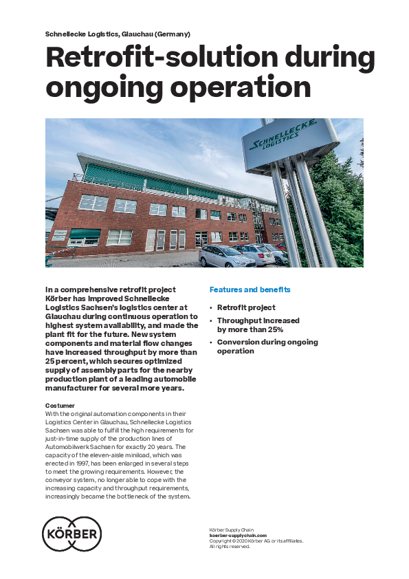 In a comprehensive retrofit project Körber has improved Schnellecke's logistics center during continuous operation to highest system availability, and made the plant fit for the future