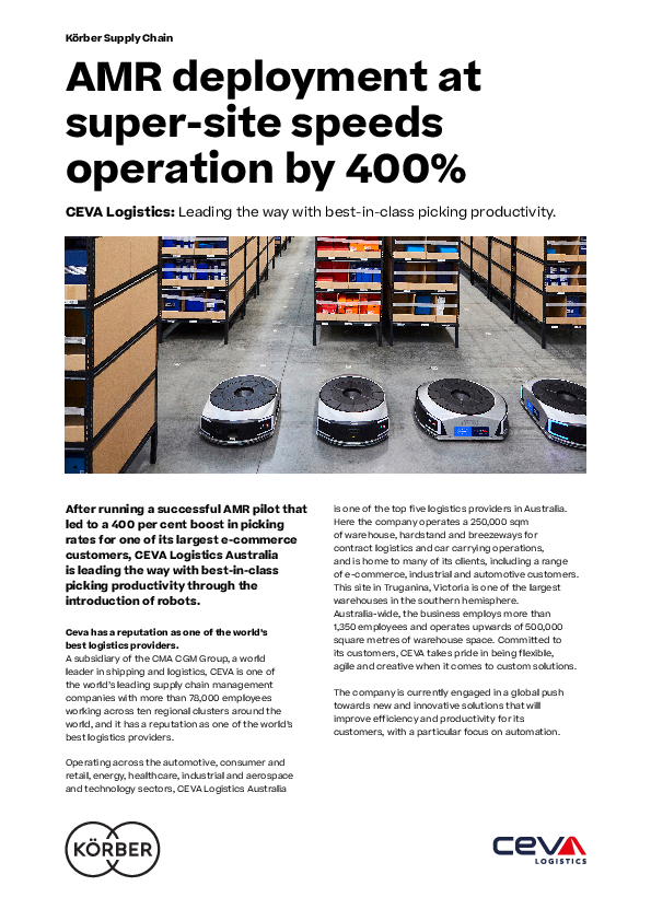 After running a successful AMR pilot that led to a 400 per cent boost in picking rates for one of its largest e-commerce customers, CEVA Logistics Australia is leading the way with best-in-class picking productivity through the introduction of robots.