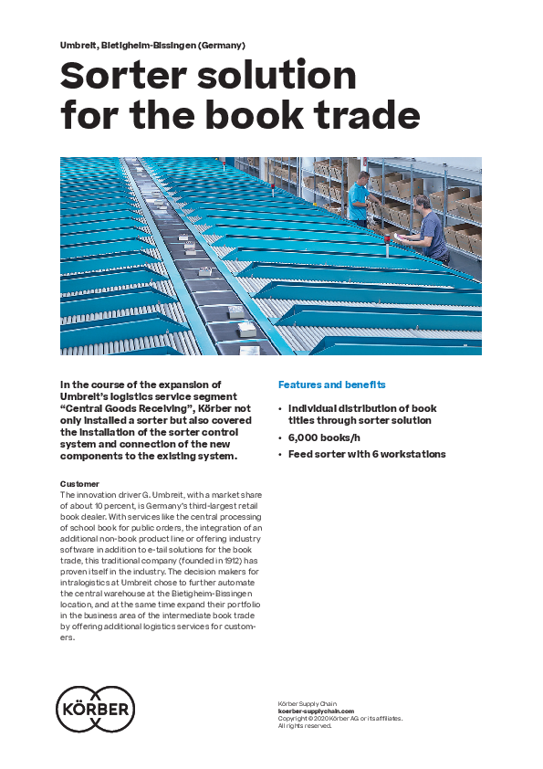 In the course of the expansion of Umbreit’s logistics service segment “Central Goods Receiving”, Körber not only installed a sorter but also covered the installation of the sorter control system and connection of the new components to the existing system