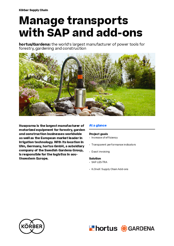 Using SAP LES-TRA and Körber’s specialized add-ons, hortus GmbH – part of the Gardena Group – has optimized its transport management and billing processes across Europe, from raw material intake to global distribution. Key performance indicators, automated carrier selection, and flexible route planning ensure maximum transparency and operational efficiency. This case study shows how hortus successfully meets the demands of international shipping with smart, scalable logistics solutions.