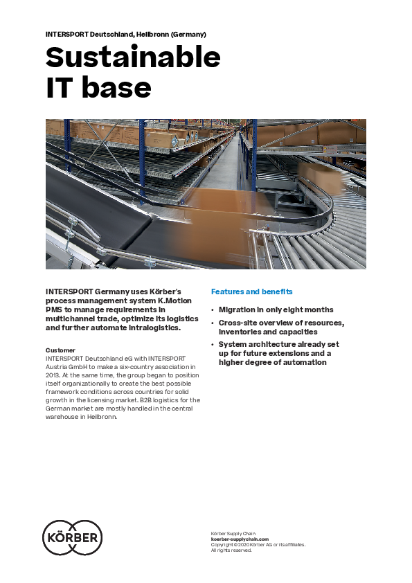 INTERSPORT Germany uses Körber's process management system K.Motion PMS to manage requirements in multichannel trade, optimize its logistics and further automate intralogistics